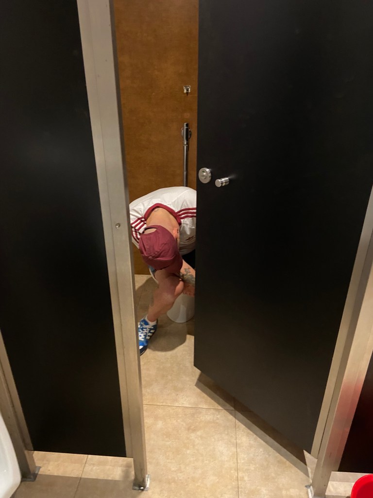 Taking this photo the toilet attendant asked me “is this your mate” No.. absolutely not I replied, bless him! looks like he’s had a good night though.